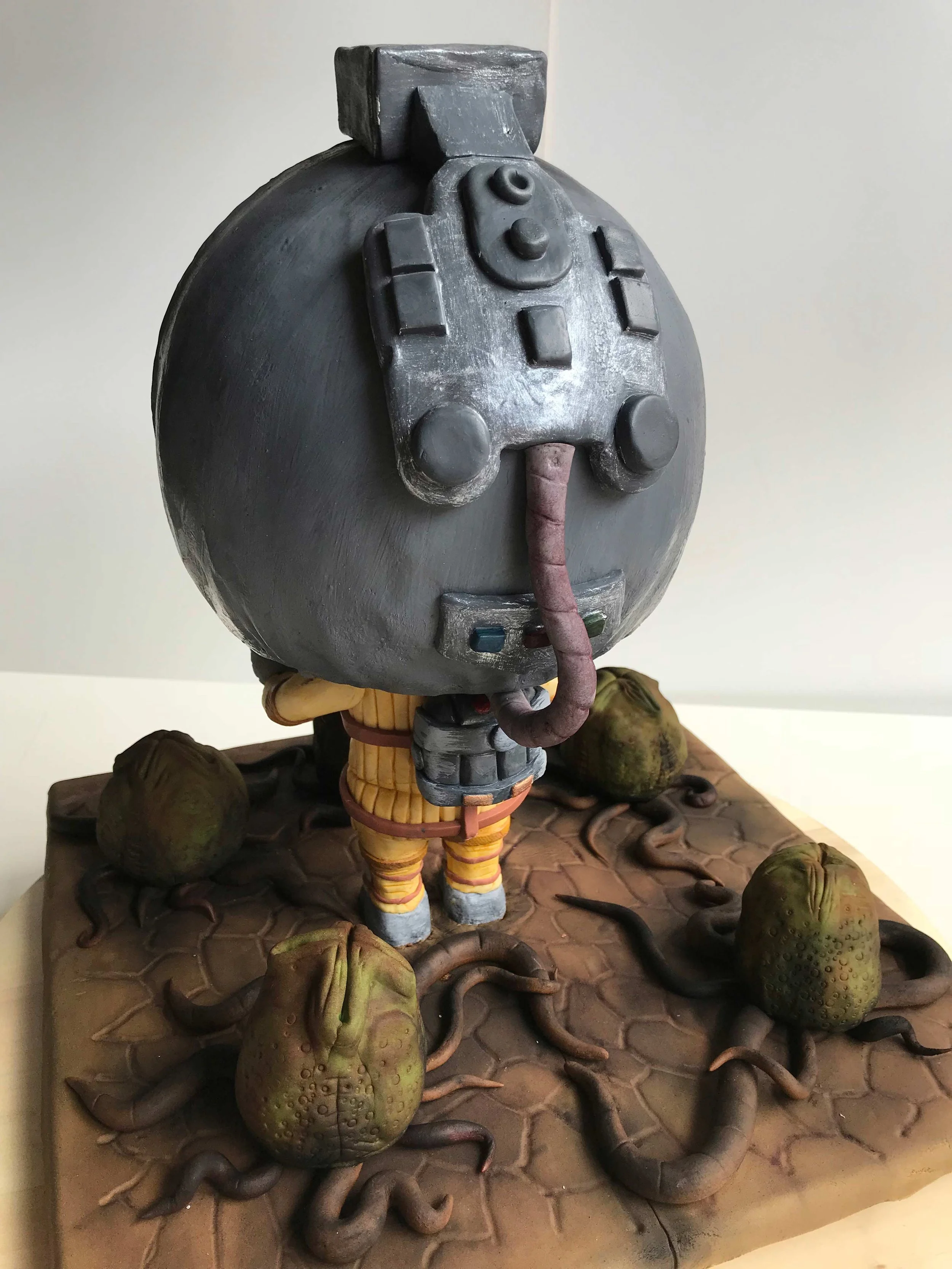 Aunque no se va a ver prácticamente porque va a tener el facehugger encima (para los no frikis, el alien amarillo), nunca se sabe si cambiaremos de opinión a la hora de colocarlo y se verá algo. Por eso no cuesta nada poner unos ojitos tipo funko con la cara del protagonista 🙂